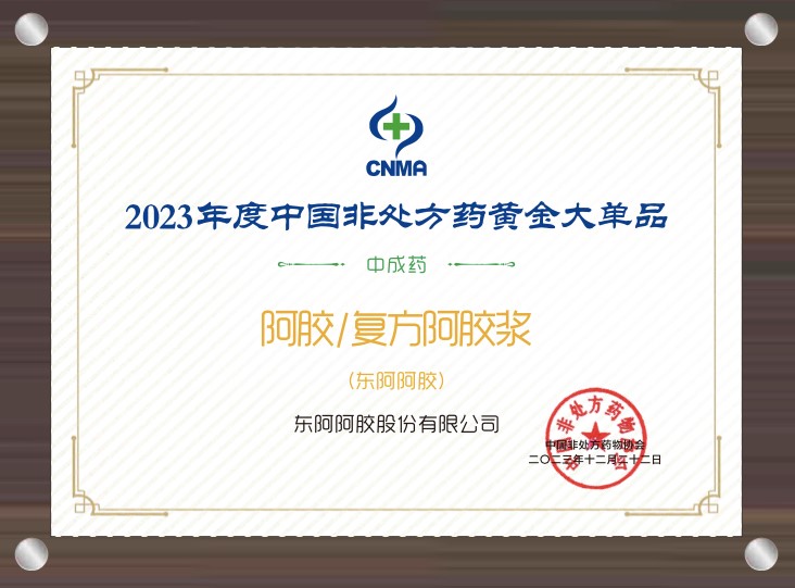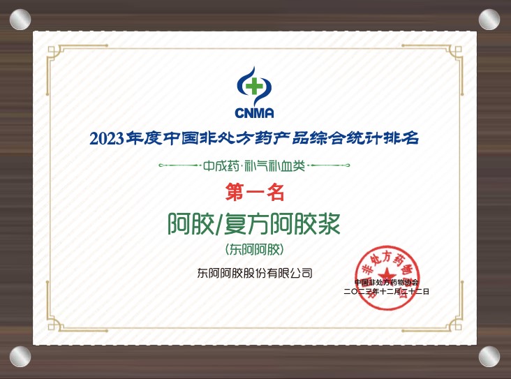憑借強(qiáng)勁的綜合實(shí)力和出色的產(chǎn)品市場表現(xiàn),東阿阿膠榮獲2023年度中國非處方藥產(chǎn)品中成藥綜合統(tǒng)計(jì)排名補(bǔ)氣補(bǔ)血類第一名,核心產(chǎn)品阿膠/復(fù)方阿膠漿入選“2023非處方藥黃金大單品”名單。