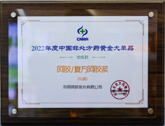 會(huì)上,東阿阿膠及旗下明星產(chǎn)品攬獲5項(xiàng)大獎(jiǎng),其中阿膠和復(fù)方阿膠漿以突出的品牌力、創(chuàng)新的產(chǎn)品力以及深刻的營(yíng)銷力榮獲“2022年度中國(guó)非處方藥產(chǎn)品綜合統(tǒng)計(jì)排名(中成藥)第一名”、“2022年度中國(guó)非處方藥黃金大單品”。