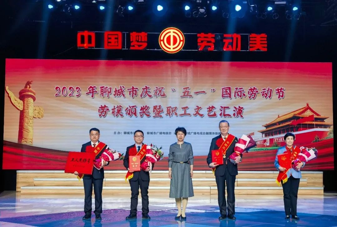 “全國(guó)工人先鋒號(hào)”獲獎(jiǎng)代表祁大華同志還參加了4月27日下午聊城市舉辦的“中國(guó)夢(mèng)·勞動(dòng)美——凝心鑄魂跟黨走 團(tuán)結(jié)奮斗新征程”2023年慶祝“五一”國(guó)際勞動(dòng)節(jié)勞模頒獎(jiǎng)暨職工文藝匯演活動(dòng)。市委書記李長(zhǎng)萍為“全國(guó)工人先鋒號(hào)”獲獎(jiǎng)代表祁大華同志頒獎(jiǎng)。