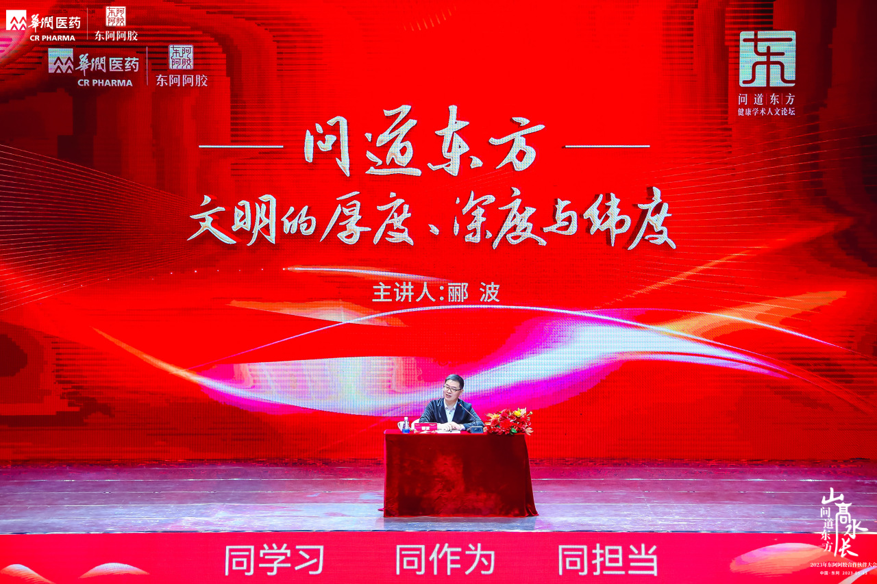 東阿阿膠還邀請(qǐng)了南京師范大學(xué)文學(xué)院教授、博士生導(dǎo)師酈波老師作《文明的厚度、深度與緯度》的文化講座。