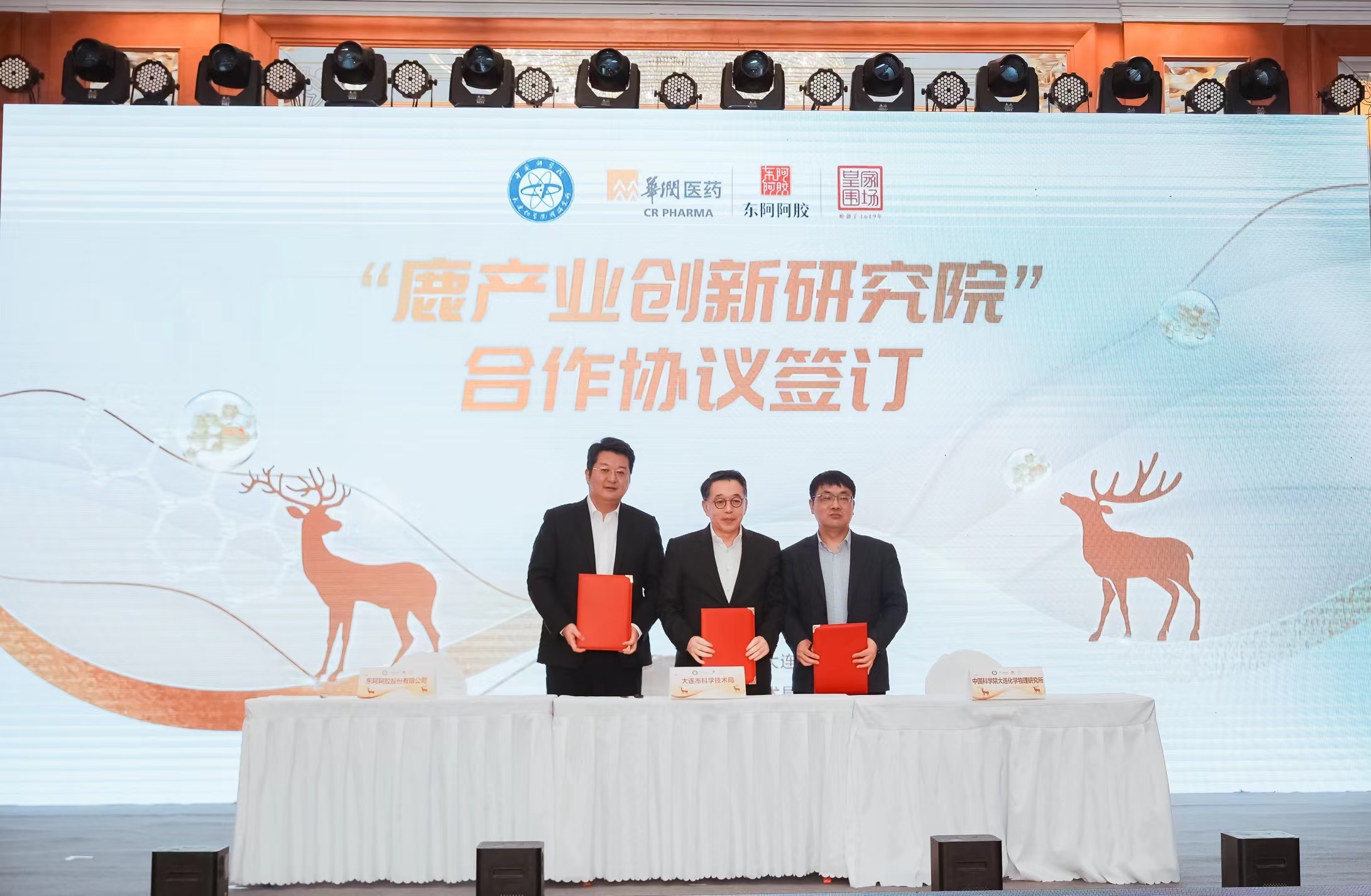儀式上,東阿阿膠、大連化物所、大連市科技局簽署《鹿產(chǎn)業(yè)創(chuàng)新研究院合作協(xié)議》。