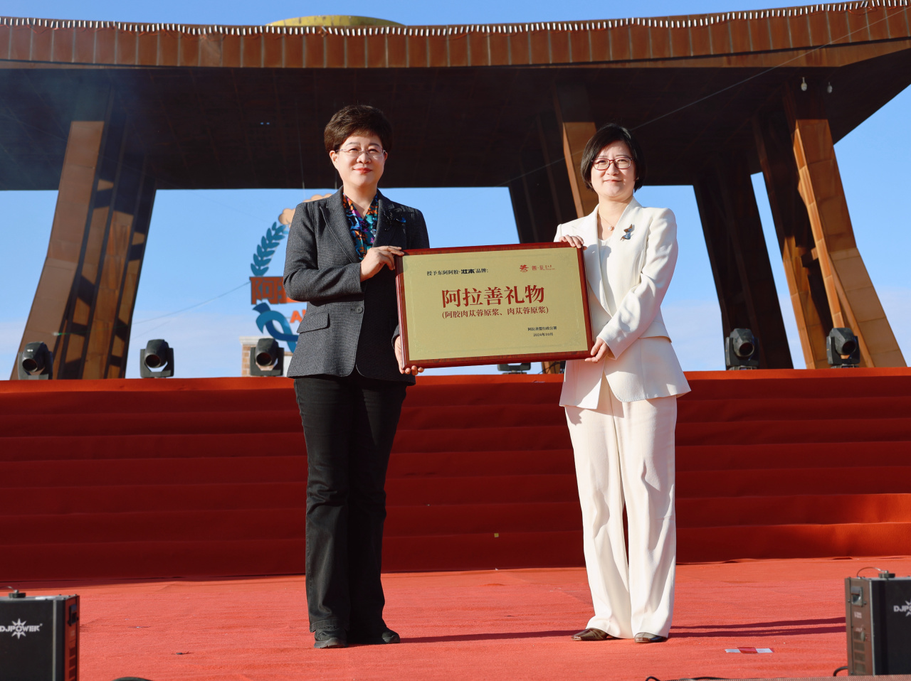 活動(dòng)現(xiàn)場(chǎng),阿膠肉蓯蓉原漿、肉蓯蓉原漿兩款產(chǎn)品成功發(fā)布,并獲得“阿拉善禮物”授權(quán),孫金妮代表東阿阿膠接受黃雅麗授予的“阿拉善禮物”榮譽(yù)牌匾。獲此殊榮是對(duì)東阿阿膠肉蓯蓉系列產(chǎn)品的高度認(rèn)可,將有助于“壯本”品牌知名度和美譽(yù)度的提升。隨后,與會(huì)嘉賓參觀了“阿拉善禮物”展廳,通過(guò)親身體驗(yàn)兩款產(chǎn)品,大家對(duì)東阿阿膠與阿拉善肉蓯蓉的創(chuàng)新融合有了更為直觀的了解與感受,一致表示對(duì)雙方合作前景充滿期待。