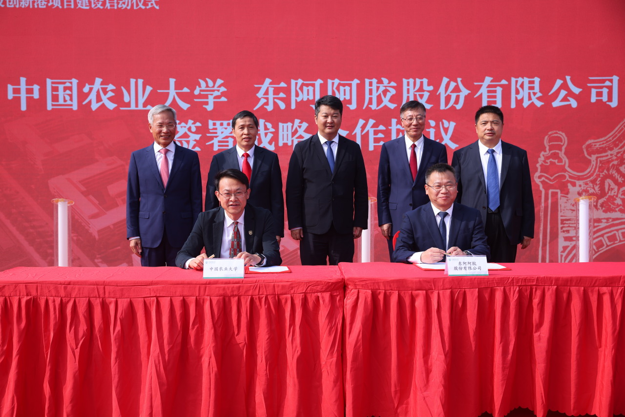 10月12日,國家農(nóng)業(yè)科技創(chuàng)新港項目建設(shè)啟動儀式在北京市平谷區(qū)舉行。儀式上,中國農(nóng)業(yè)大學與東阿阿膠股份有限公司(以下簡稱“東阿阿膠”)簽署了全面戰(zhàn)略合作協(xié)議,雙方將共同建設(shè)首個在國家農(nóng)業(yè)科技創(chuàng)新港落地的新型研發(fā)機構(gòu)“產(chǎn)業(yè)創(chuàng)新研究院”。