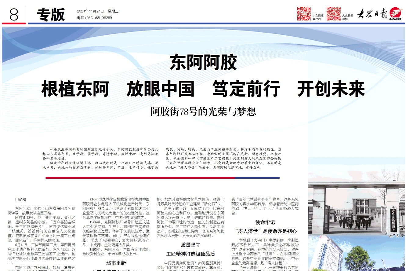東阿阿膠根植東阿放眼中國(guó)篤定前行開(kāi)創(chuàng)未來(lái)